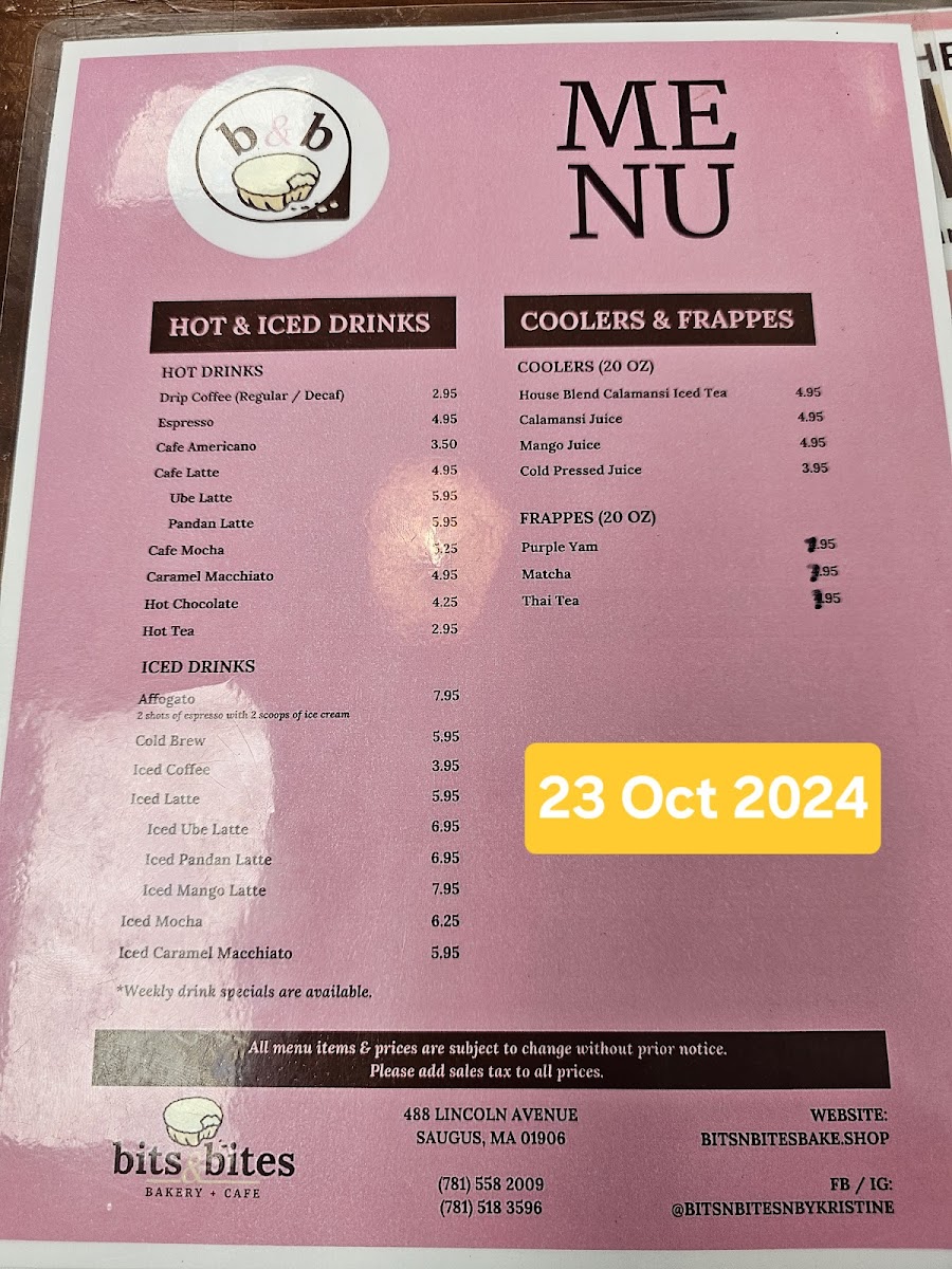 Welcome to Bits & Bites Bakery Cafe, where culinary creativity meets comfort in Saugus, MA. Nestled at 488 Lincoln Ave, this charming cafe is a haven for food lovers. The diverse menu features an array of hot drinks including classic drip coffee, specialty lattes like Ube and Pandan, and indulgent options like cafe mocha and hot chocolate.